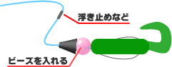 そんな場合はシンカーの少し前に浮き止めゴムなどで固定するといいです。 少し隙間を空けて